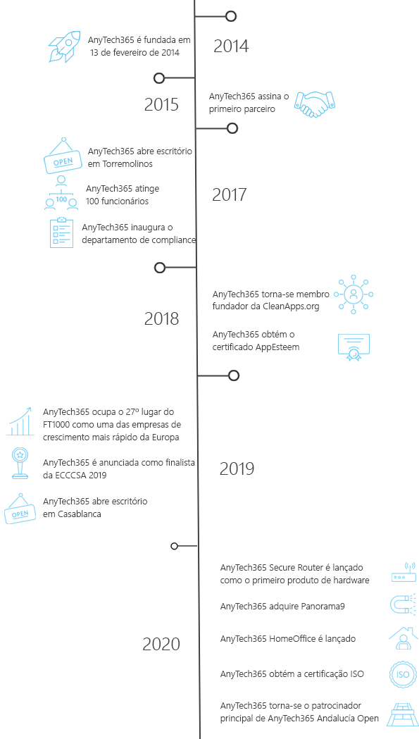 Hoje, somos aproximadamente 400 funcionários e nossos especialistas em TI nativos estão oferecendo suporte técnico em mais de 15 idiomas. Em 2019, Financial Times classificou AnyTech365 como no. 27 no top 1000 das empresas de crescimento mais rápido na Europa.